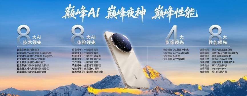 荣耀魔法大模子3.0,包罗鸿蒙和iOS生态正在内的全品牌、全设备都能够插手荣耀信赖环,荣耀Magic8全系搭载年度最强旗舰芯片第五代骁龙®8版,针对芯片的各个模块定制专属优化引擎,巅峰AI、巅峰夜神、巅峰机能。